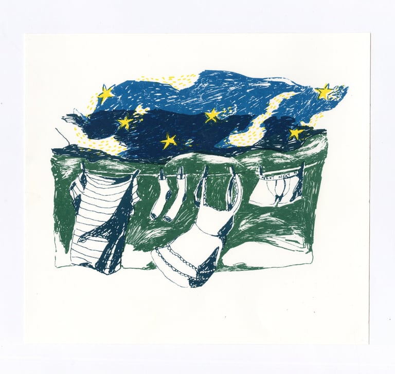 Pen on coloured watercolour paper.